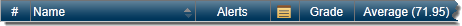 The Student Scores header row displays the current average of the scores for each assignment. To sort the class by an individual assignment's scores, click on the assignment's average. Click again to reverse the sort order.
