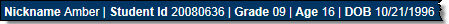 The header displays the student's Nickname, Student ID, Grade, Age, and Date of Birth.